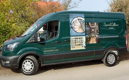 This van for Spiral Cellars London is designed to be simple yet elegant, which is representative of the brand itself. There’s a logo upfront on the bonnet of the ban and a web address on the side. The images stand out thanks to the dark green colour.